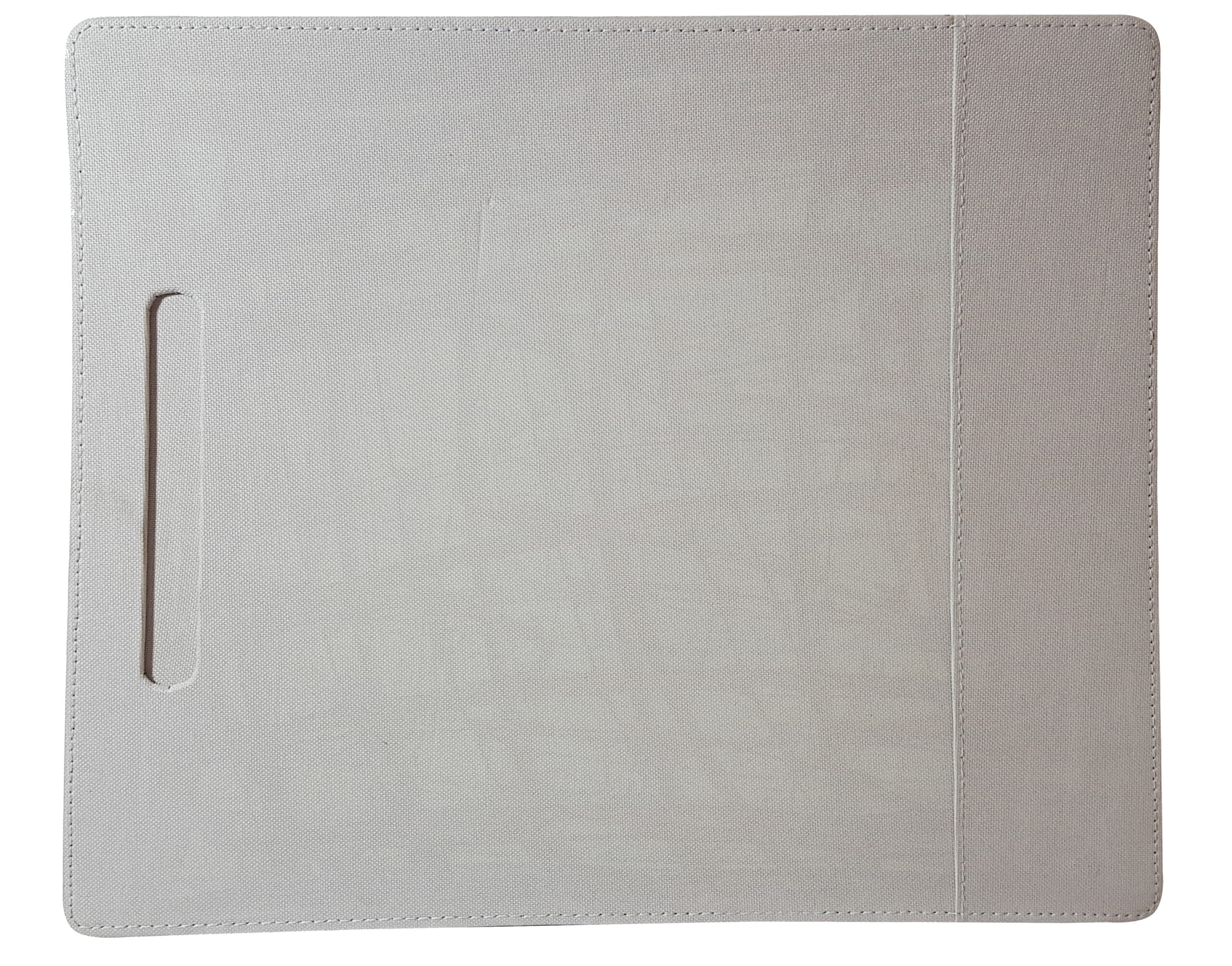 White PU Blotter Elegant for Hospitality Services consisting of a Pen well on the left-hand side and a paper slot on the right-hand side.