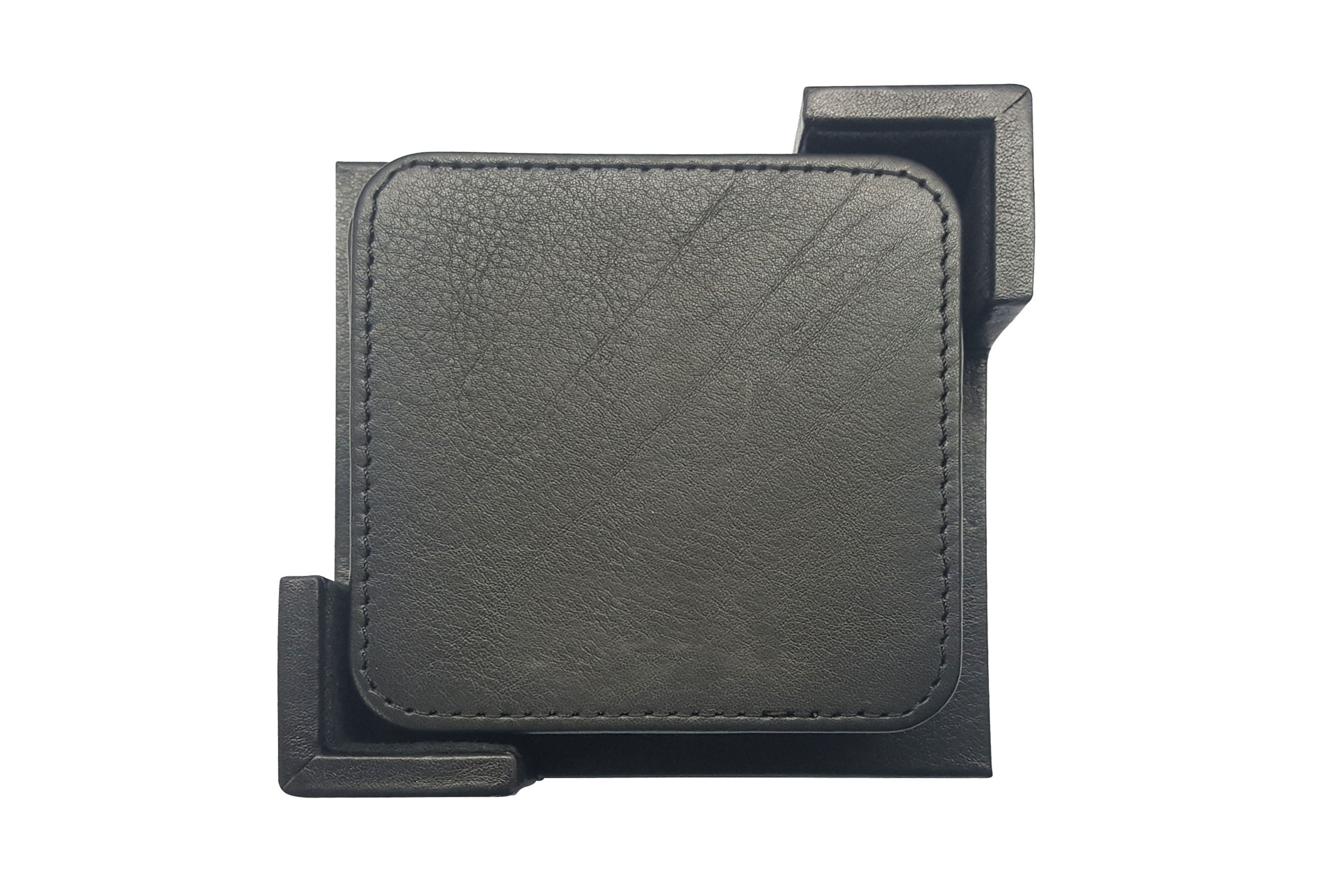 Classic Leather coasters with stylish holder, made of MDF and leather. Set of 4 coasters.